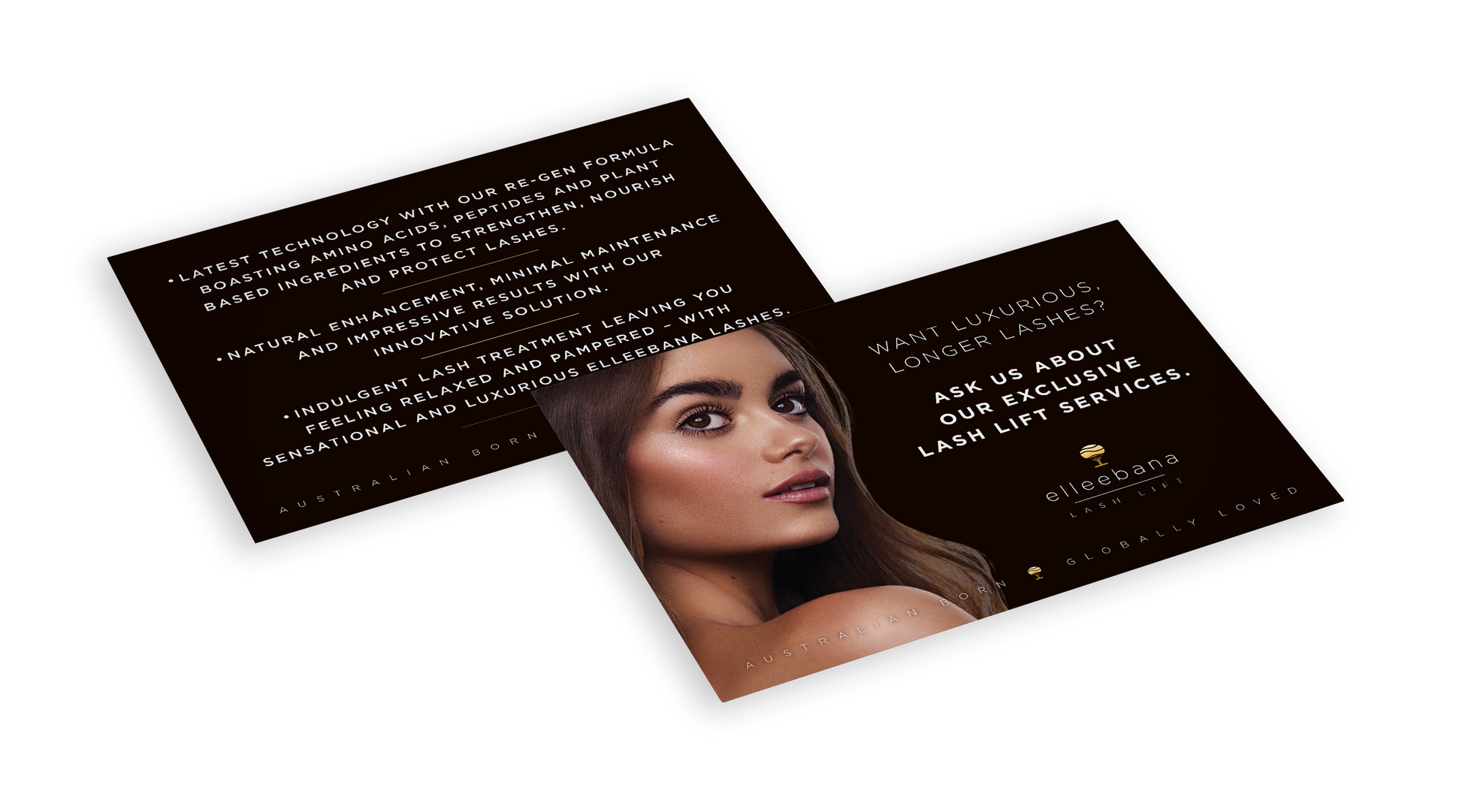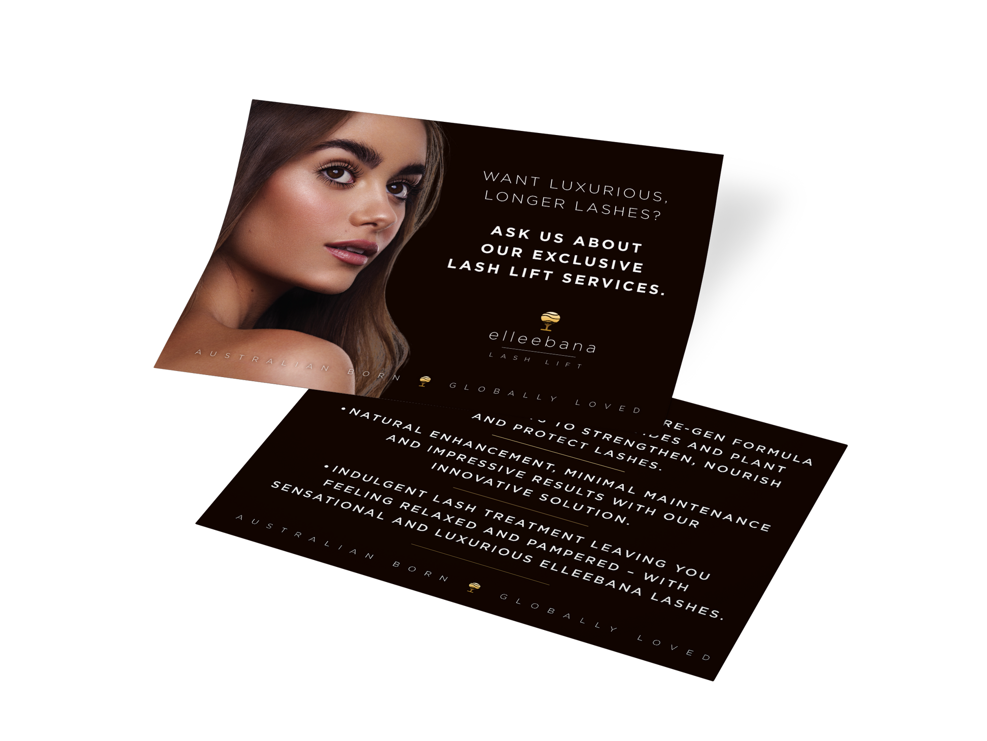 Advertise your lash lift services to your clients, display these cards for your clients to learn more about the benefits of Elleebana lash lift and for taking home with them. Pack of 50 promotional salon leaflets.